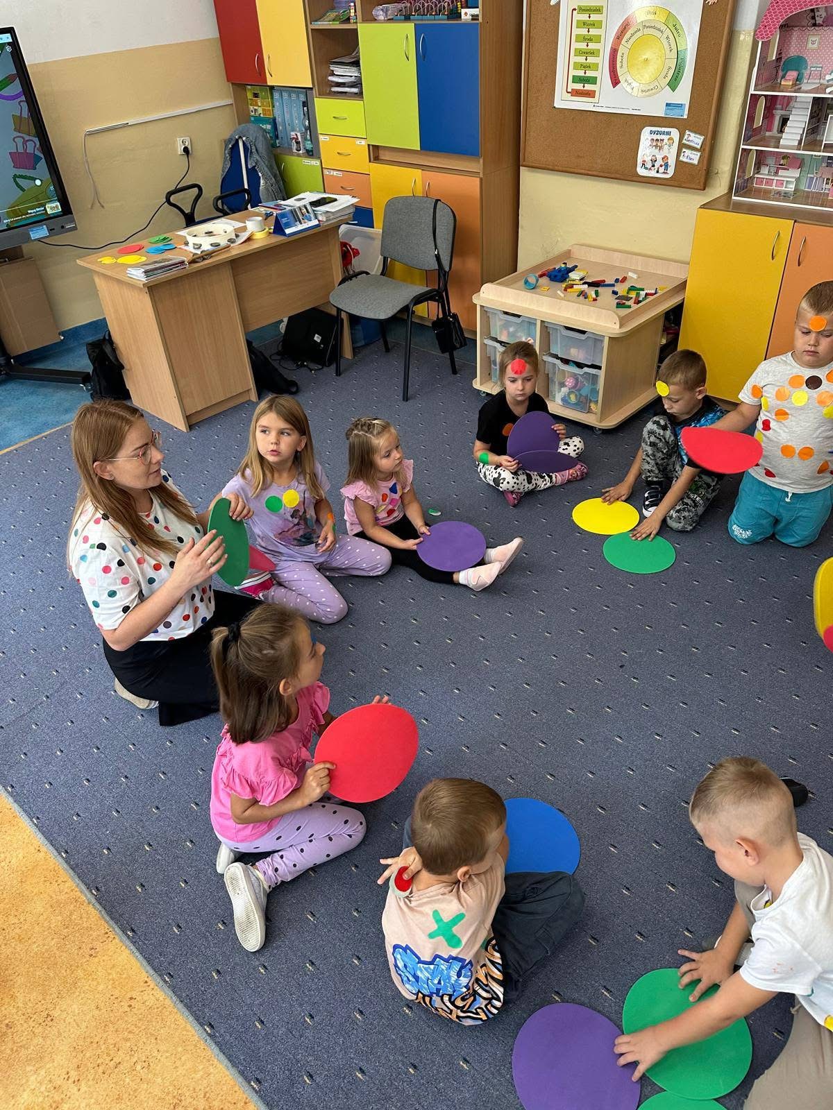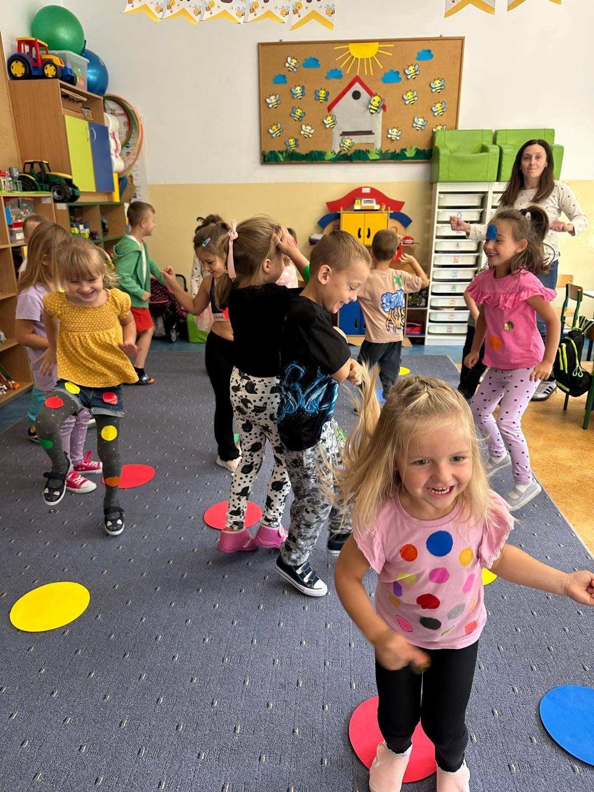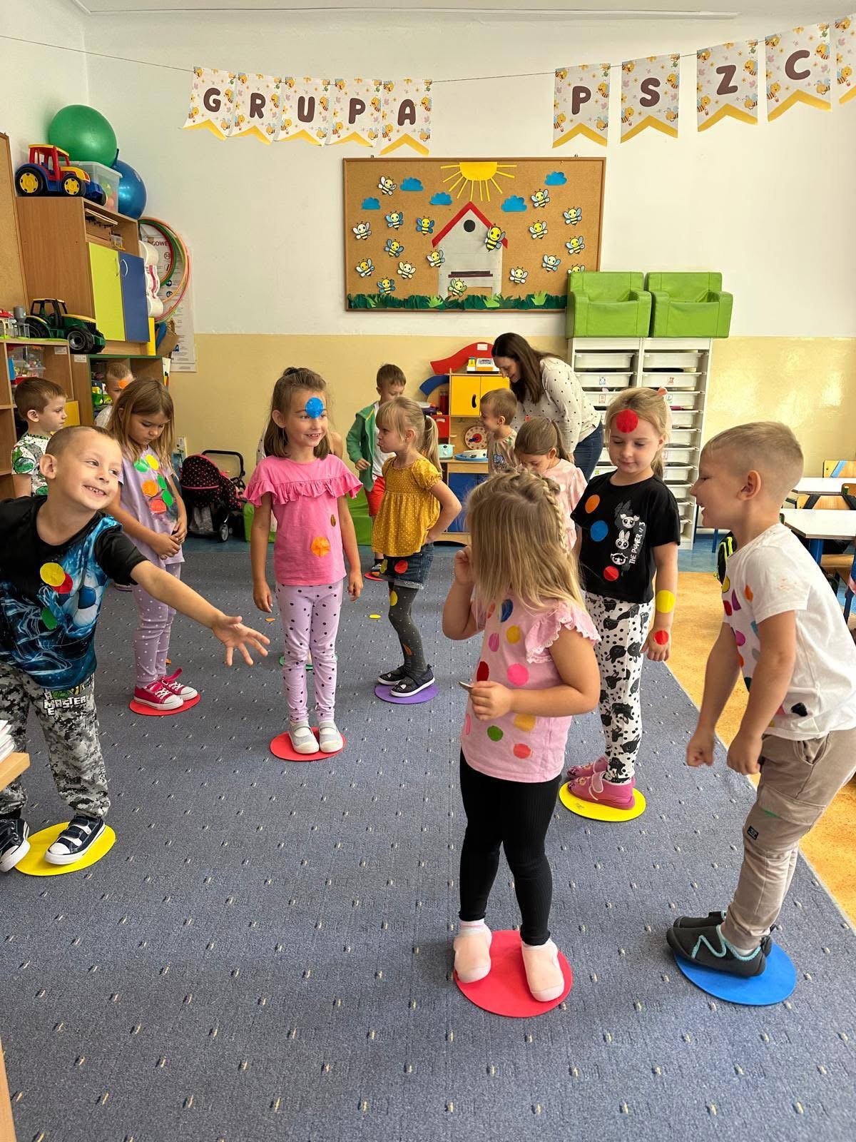 🔴 bawiły się w gry i zabawy: „Kto ma kropkę?” oraz „Moja kropka będzie…”,