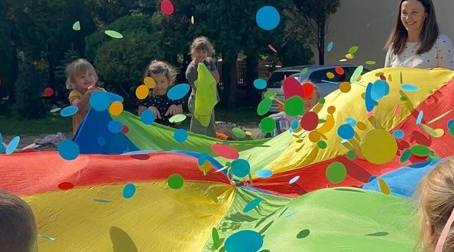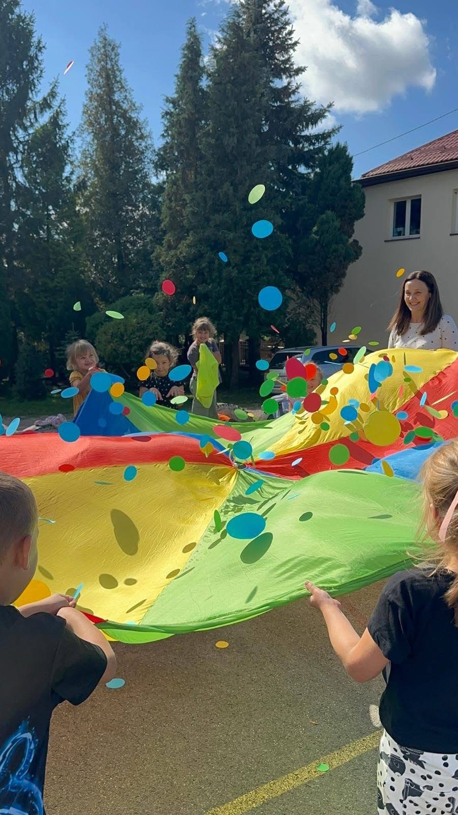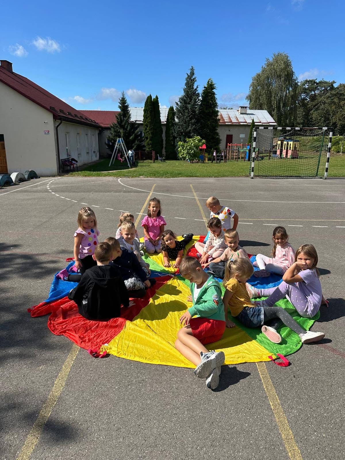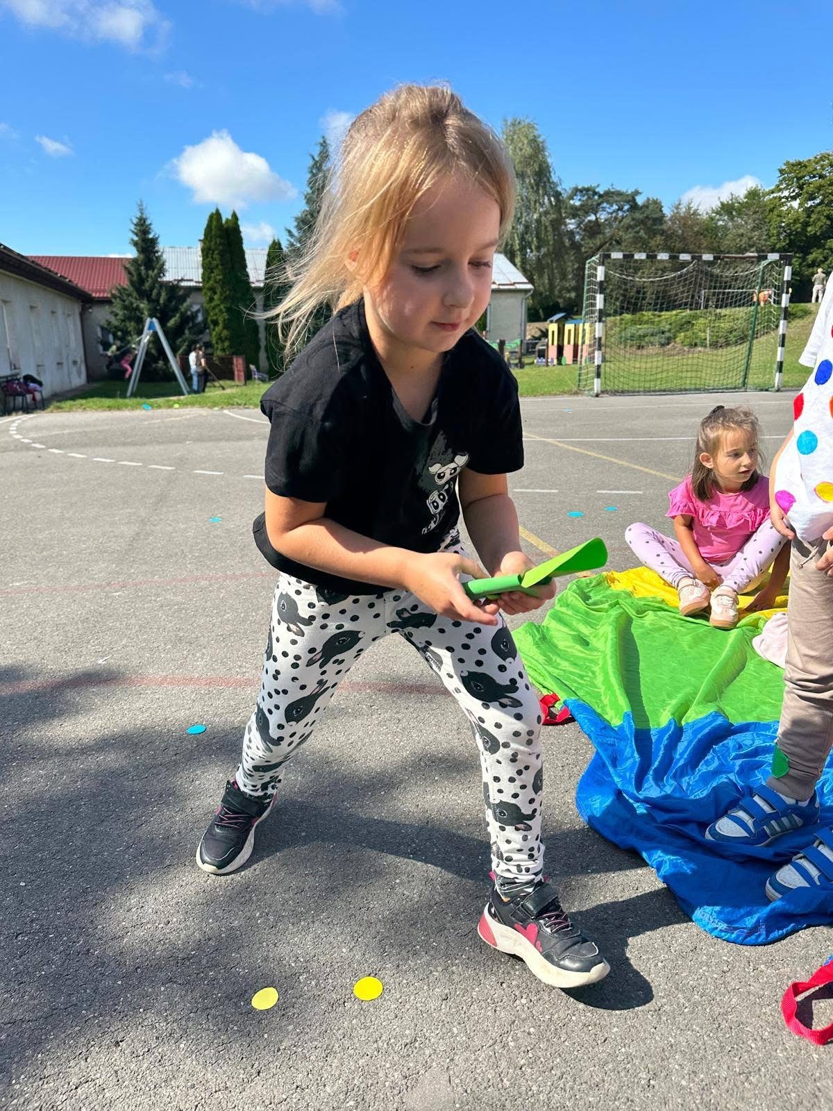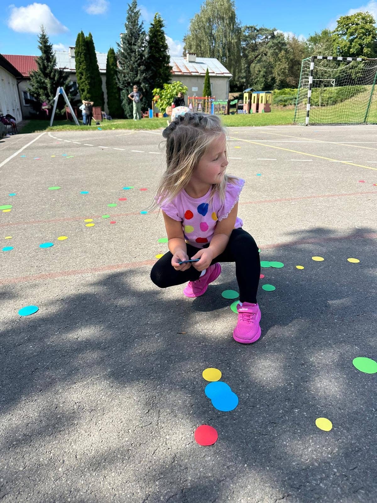 🔴 a na boisku szkolnym czekała na nich ruchowa zabawa „Deszcz kropek”. ☔🔵