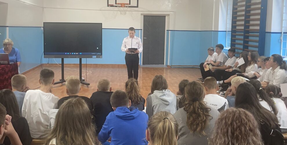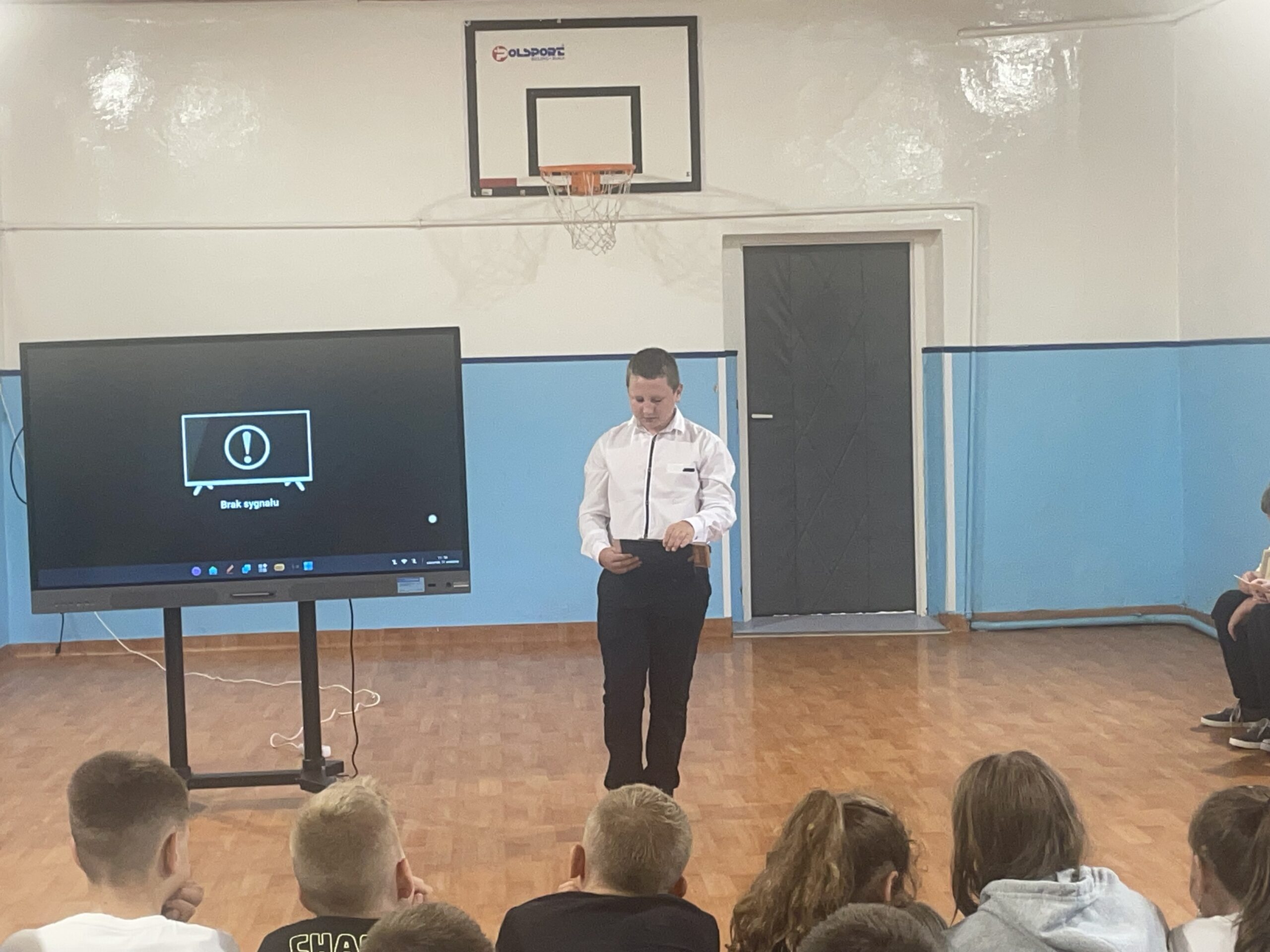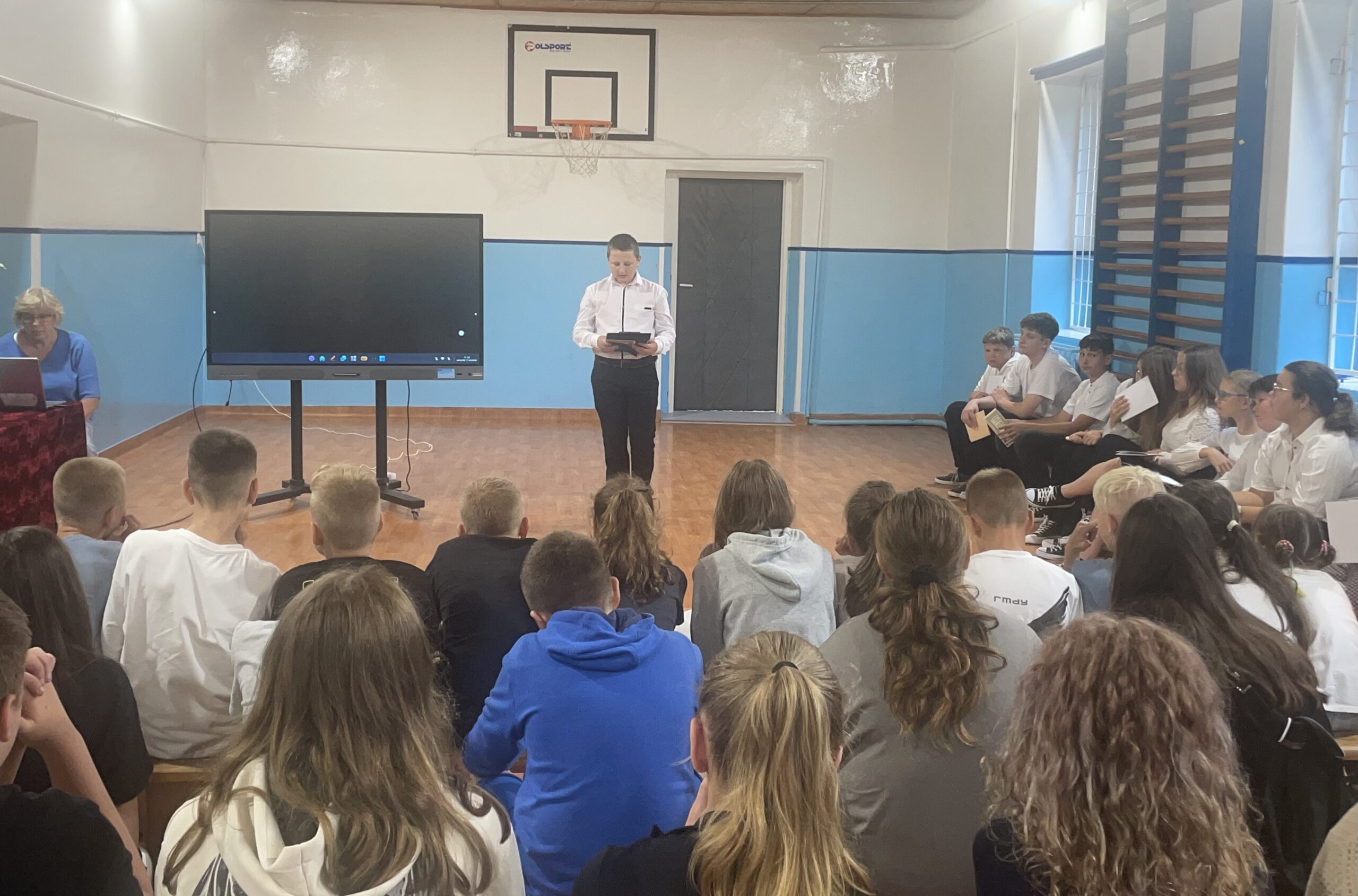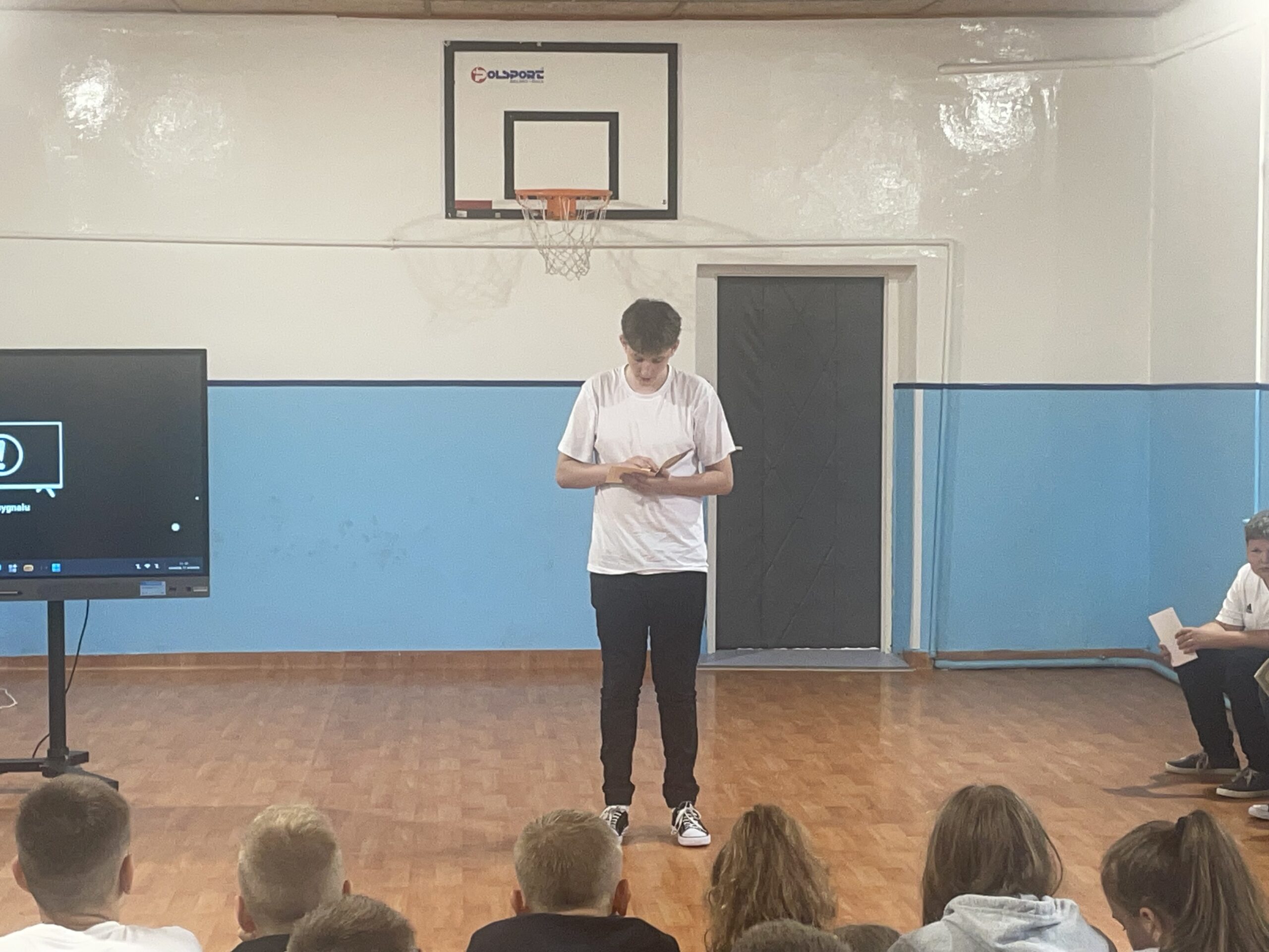 Uczennice i uczniowie klas 3 – 8 nie tylko poznali wybrane utwory poety, ale także przybliżyli sobie jego barwny życiorys i rolę, jaką odegrał w rozwoju polskiej literatury. Z wielką przyjemnością wysłuchali ciekawych interpretacji przygotowanych utworów. Było to ciekawe wydarzenie, podczas którego odkrywaliśmy piękno języka, uniwersalność myśli i ponadczasową mądrość twórczości Kochanowskiego, zapisaną w pieśniach, fraszkach trenach. Chociaż poeta żył i tworzył ponad 450 lat temu, jego twórczość nie traci na aktualności. Czy dziś nie martwimy się o zdrowie, nie tęsknimy za odpoczynkiem na łonie natury, czy nie potrzebujemy nadziei i pocieszenia w trudnych sytuacjach?